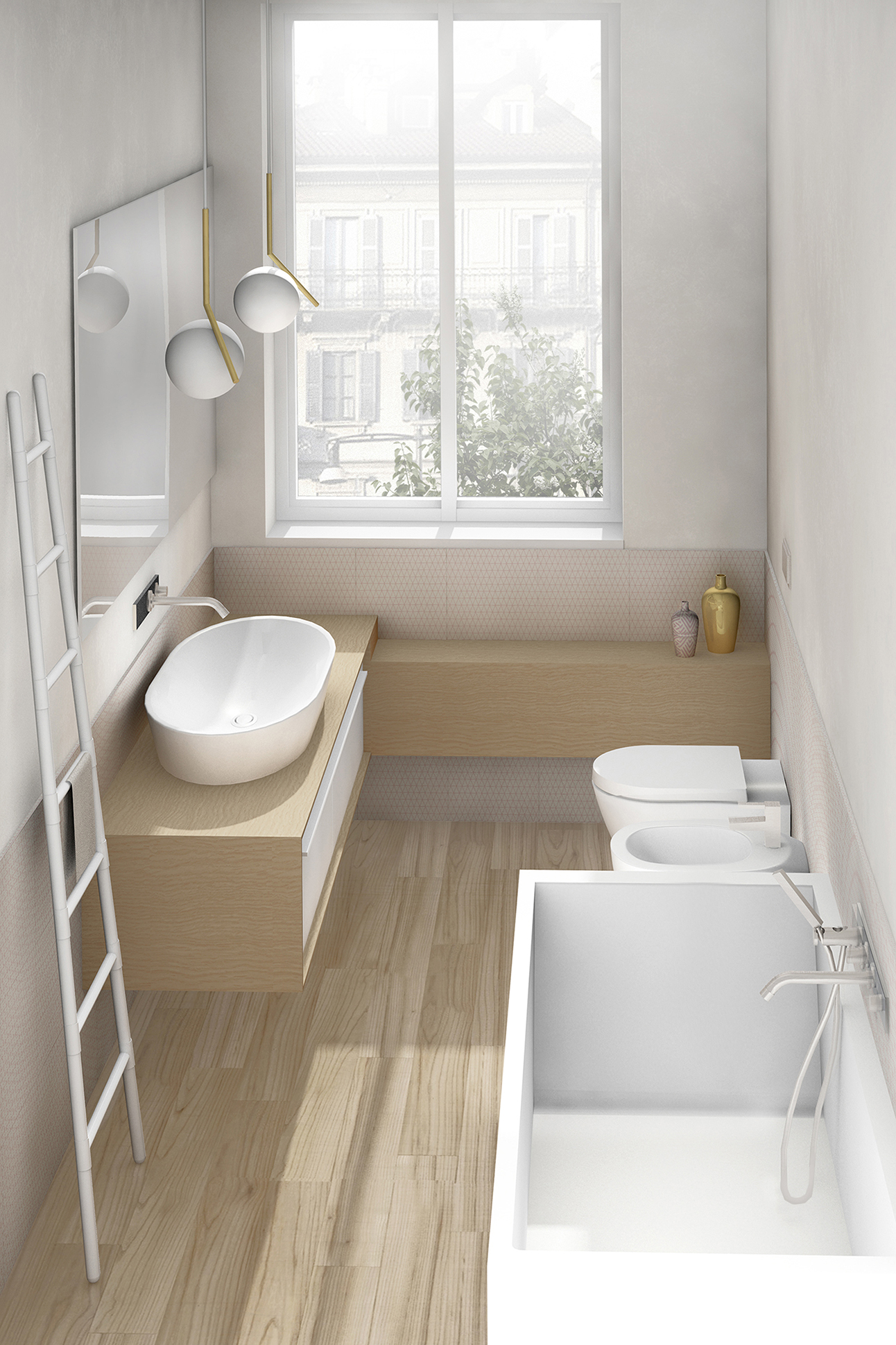 L’appartamento si trova al quinto piano di una stabile signorile degli anni '60 e presenta un interessante impianto distributivo risalente ad un progetto degli anni '80, caratterizzato da setti diagonali, pedane e gradini di raccordo tra gli ambienti . Il nostro progetto ha voluto salvaguardare il più possibile questo impianto distributivo seppur nel rinnovo completo dei materiali e delle finiture maggiormente in linea con i gusti e lo stile di vita dei clienti: una giovane coppia con una bambina.