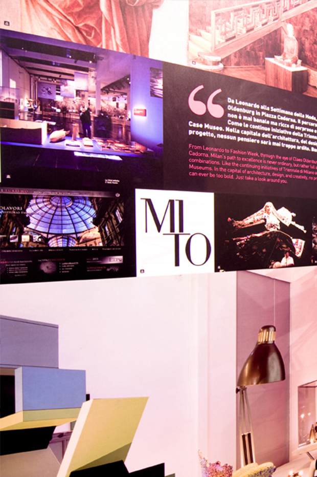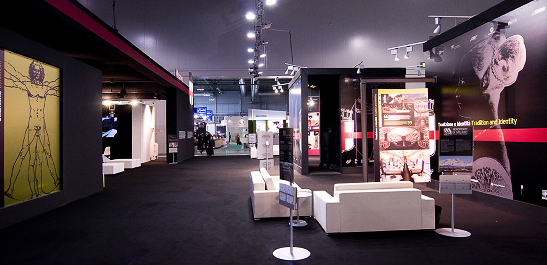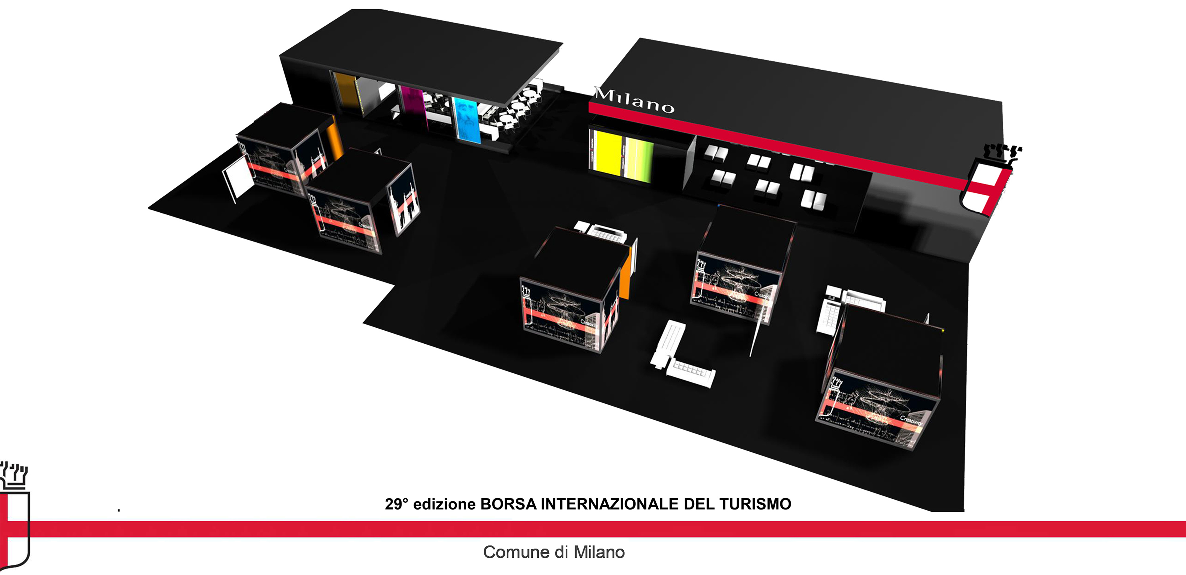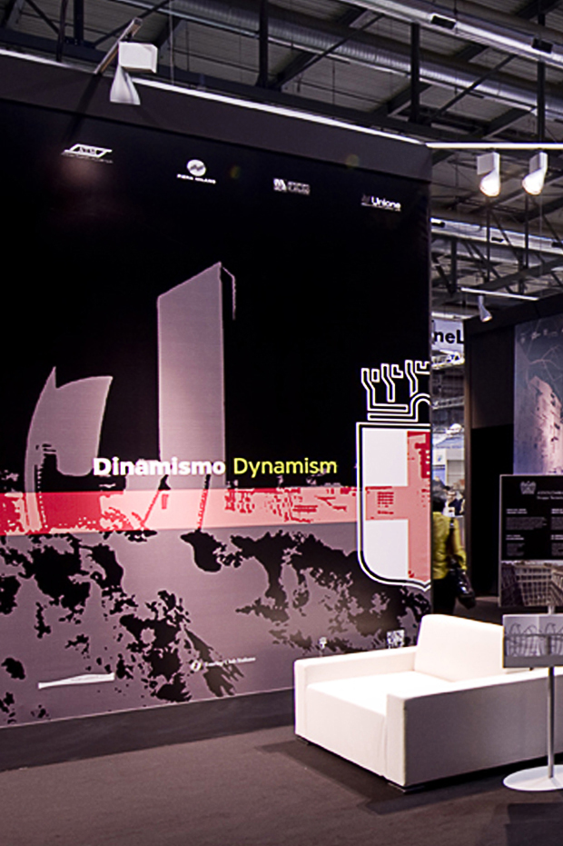 The stand for the Comune di Milano at the 2009 BIT was to show the many excellent attributes of Milan, through a high quality presentation linked to aesthetics, technology and organization. For such motives it was decided to organize a 1000 sq.mt stand on the excellence of the city, proposing an in-depth look through the language of aesthetics, art, technology, and organization, all of which are embedded in the Milanese environment. A journey through art, materials, designs and real operations in a continuous dialogue highlighting the inventiveness of the Milanese coupled with their functionality.