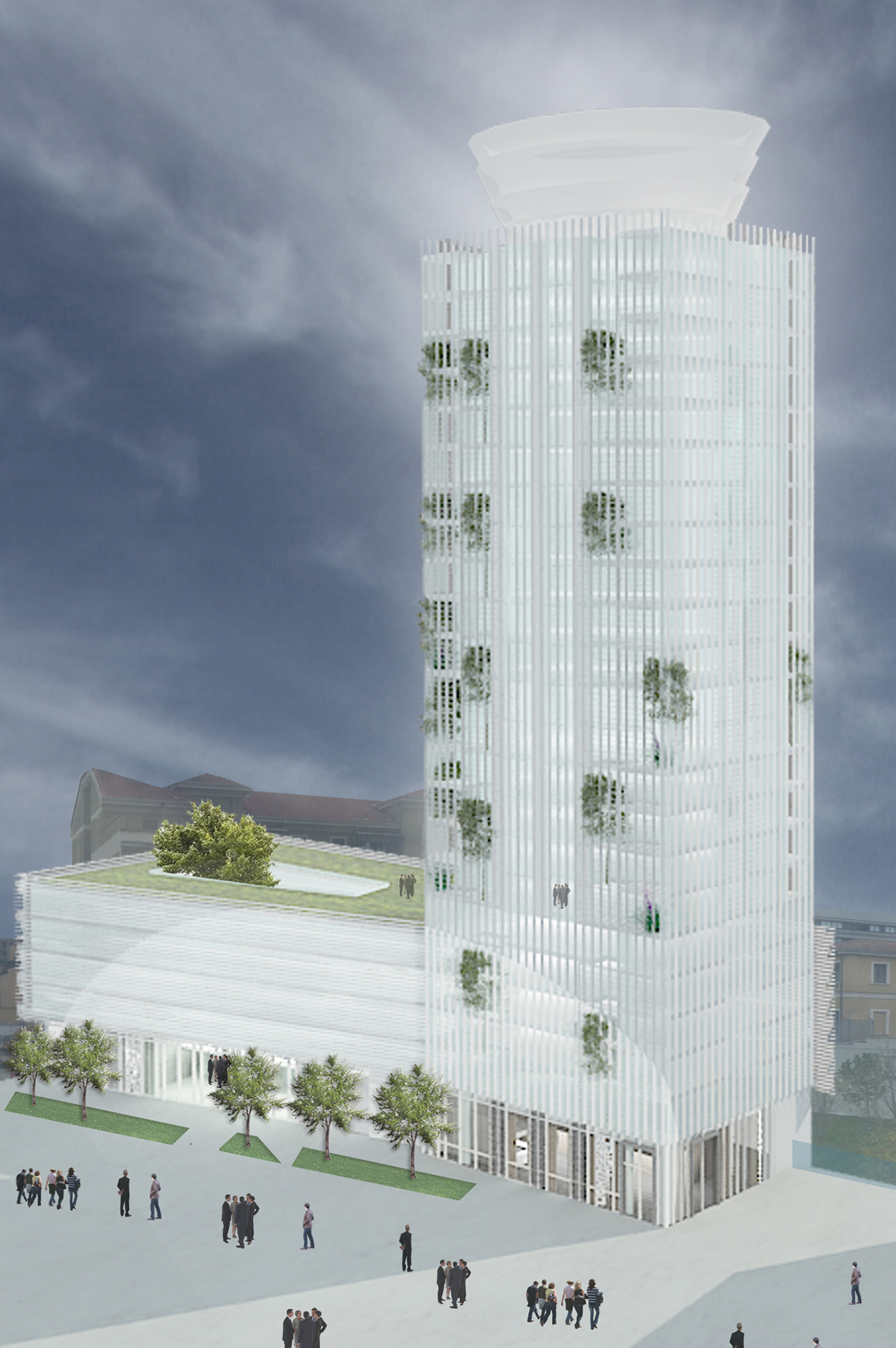 The project for the Lighthouse had the aim of being perceived as a glass tower, standing out, light but recognizable, from piazza Gae Aulenti, becoming a light icon at night, just like a real urban light-house. The objective was to create a new urban icon within the skyline of this new part of town, at the same time recognizable and innovative although within Milanese urban tradition.