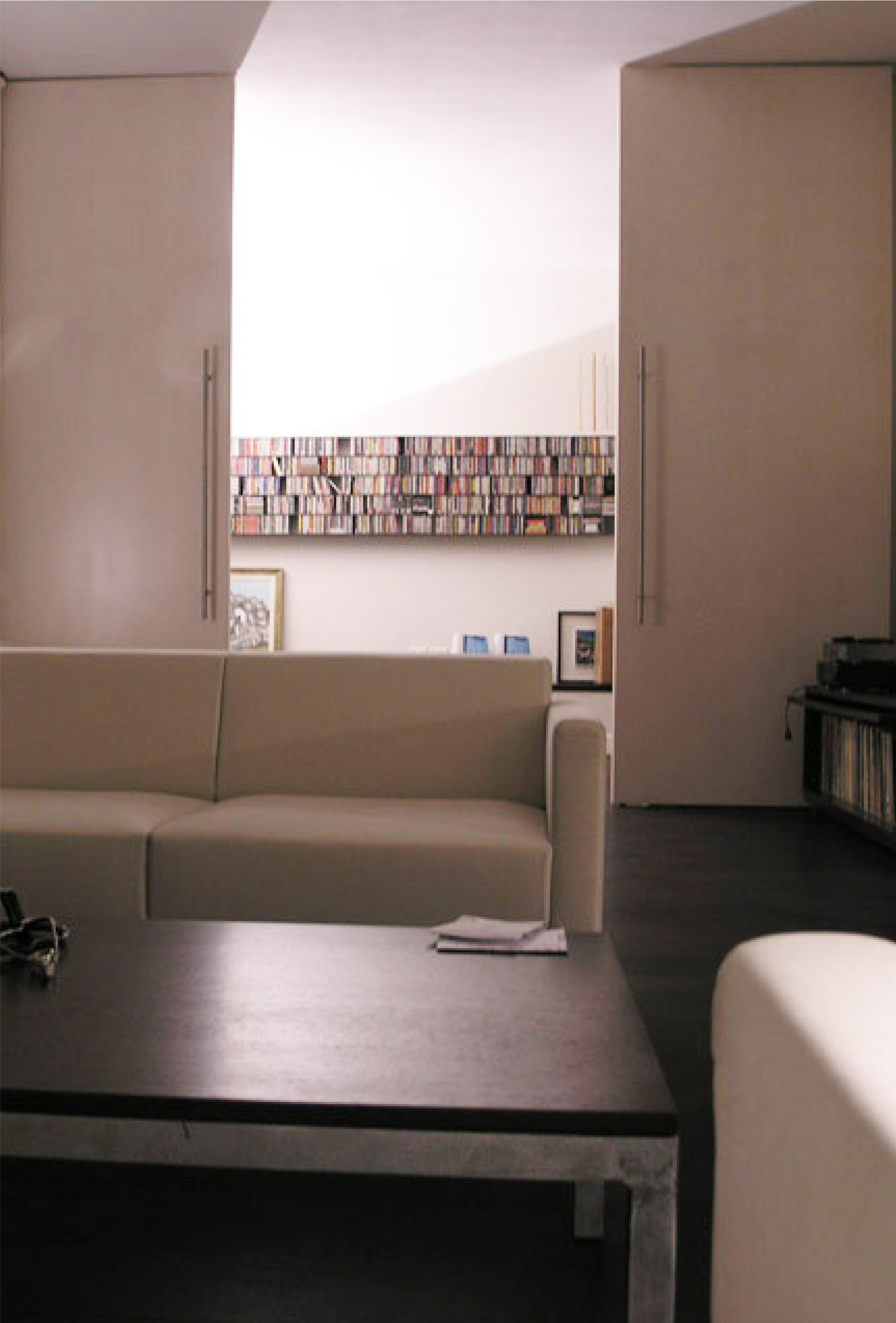 Il progetto d’interni è partito dall’accorpamento di due unità abitative e ha cercato di rispettare il carattere già forte e determinato della morfologia preesistente. Lo spazio risultante è una casa di circa 150 mq dalla pianta ad L, molto luminosa e caratterizzata da una decisa dicotomia cromatica tra toni chiari e scuri. L’ingresso si apre sul soggiorno angolare, cerniera di tutto l’appartamento, ai lati la cucina, lo studio e due zone notte separate Tutte le pareti sono neutre salvo una rossa superficie espositiva per una raccolta di dipinti, il pavimento in parquet di wenge posato a doghe lunghe.