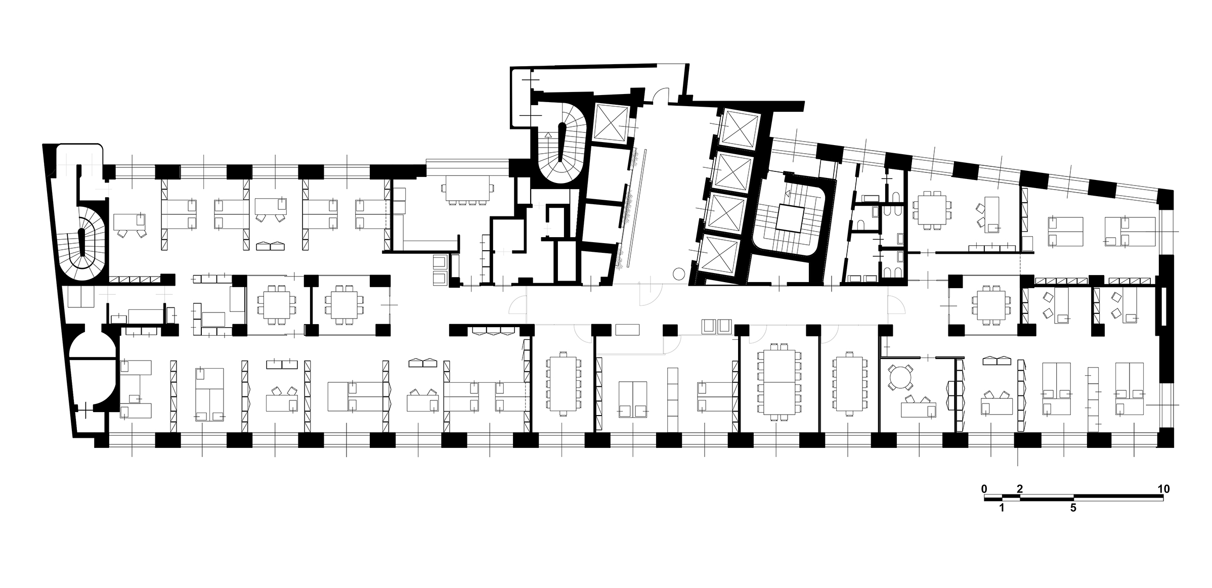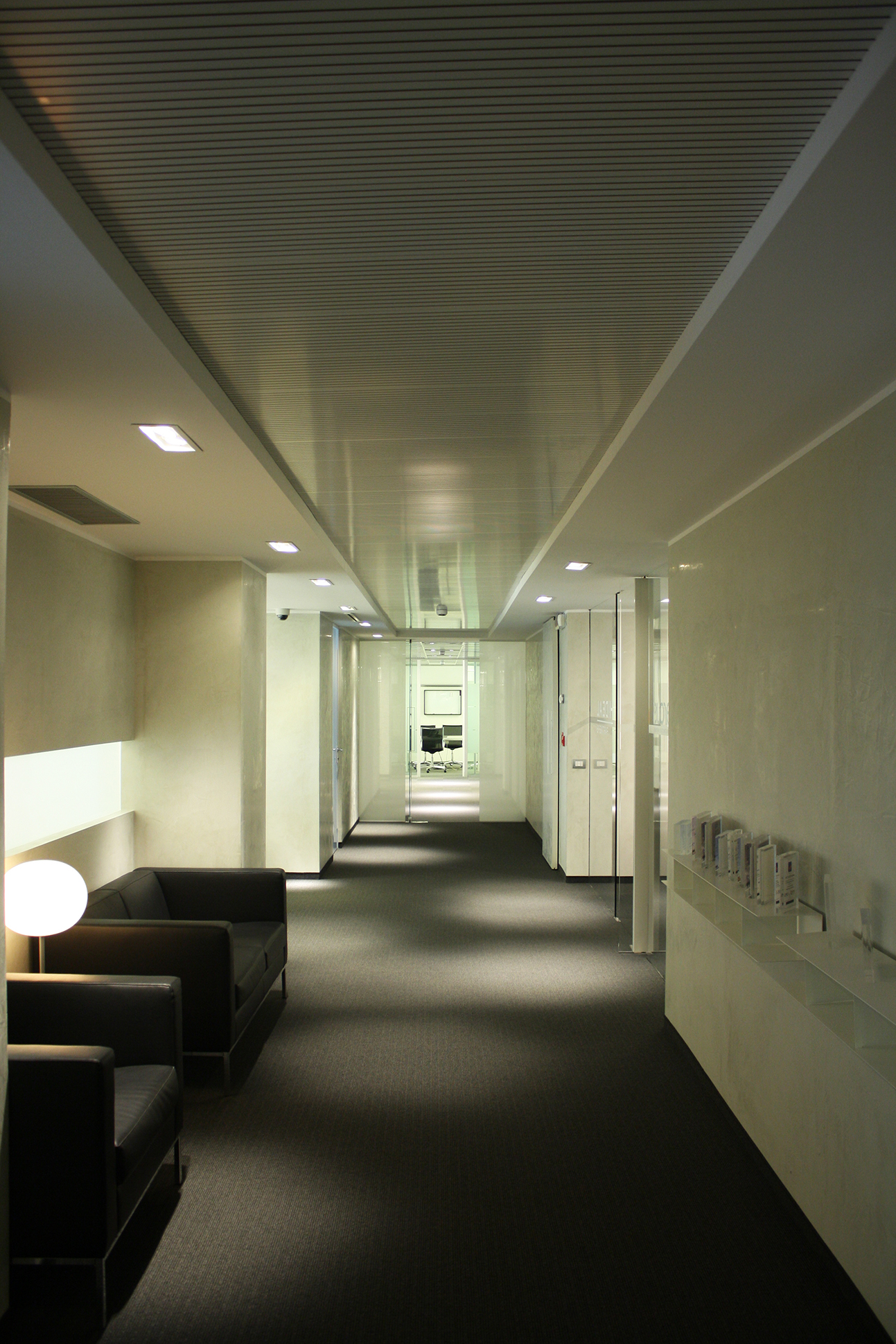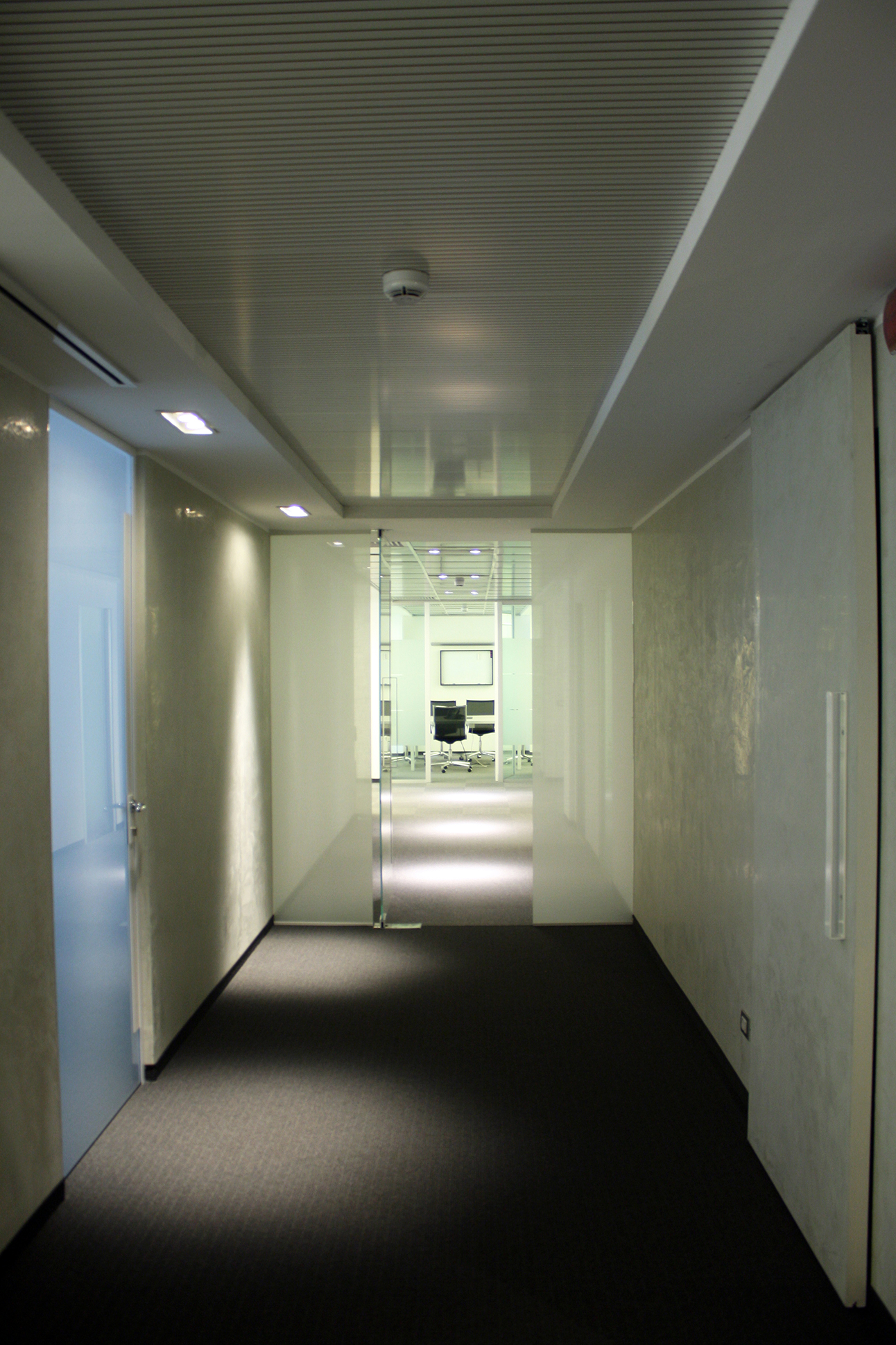 The Milanese headquarters of Hideal, an independent real estate and infrastructure advisory company, occupies a whole floor of a historical building designed by architect Gio Ponti. Office space layout is subdivided into two large open-space areas, linked by a long distribution corridor which also connects meeting rooms and service space .